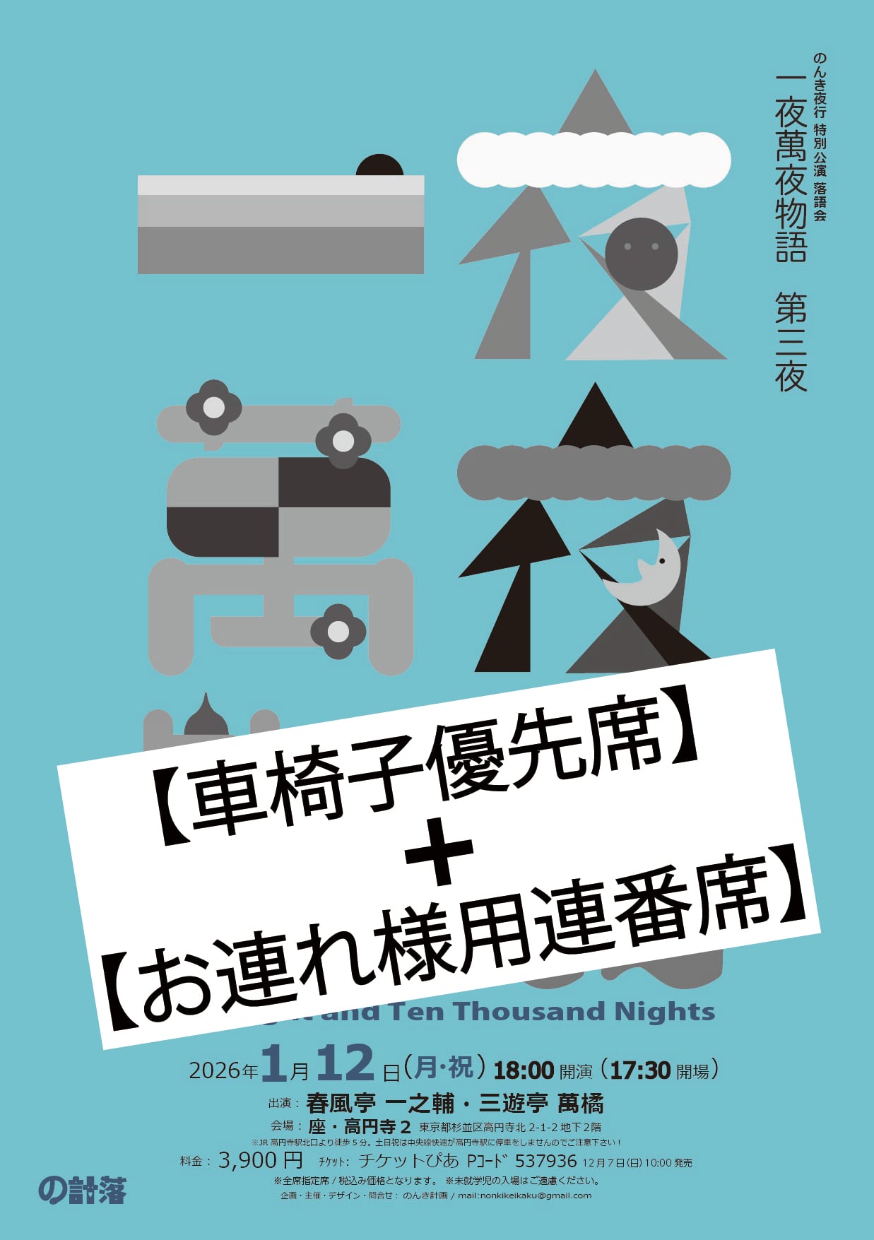 【一夜萬夜物語 第三夜】車椅子優先席+連番席チケットセット